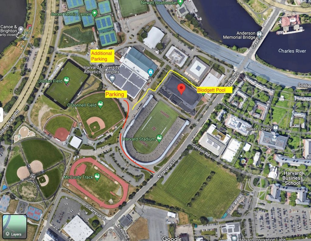Blodgett Pool is located at the corner of N. Harvard and Soldier's Field Road. See the yellow line on the map below.